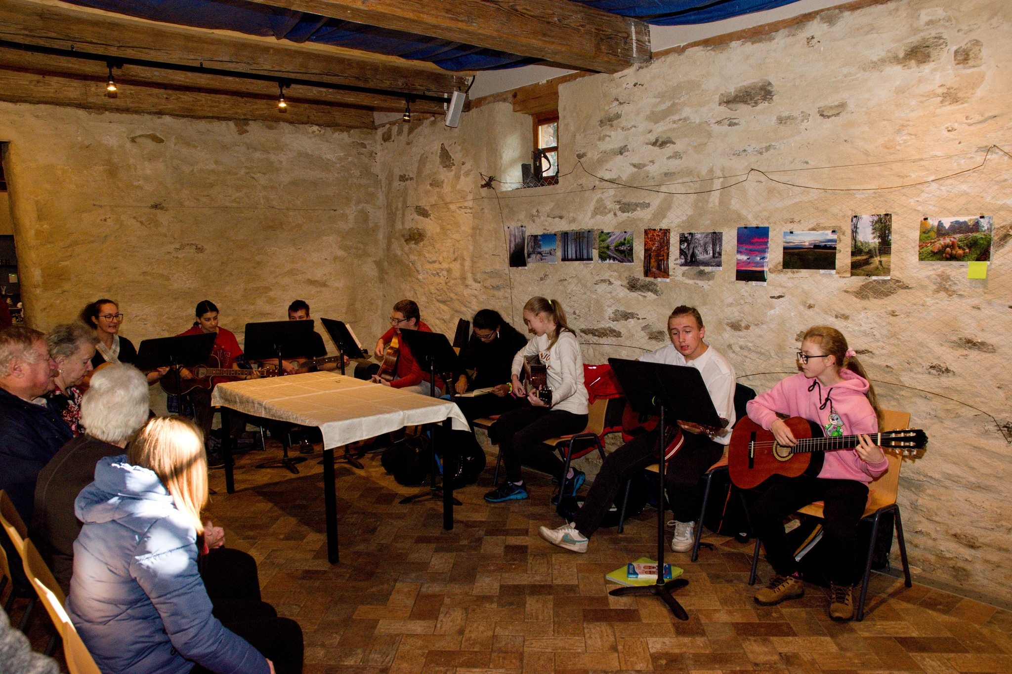 vyhlášení výsledků fotosoutěže, hudební doprovod místního kytarového kroužku