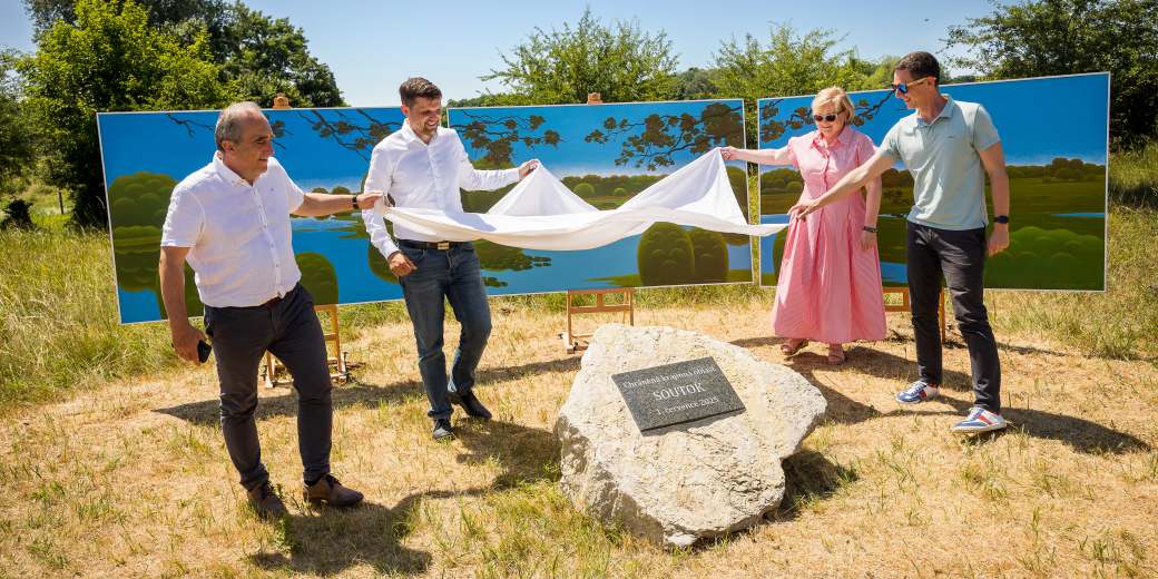 „Vyhlášením chráněné krajinné oblasti Soutok jsme splatili jeden z největších dluhů ochrany tuzemské přírody. Určitě by se to nepodařilo bez spolupráce s místními lidmi. Proběhly proto zhruba tři stovky jednání s představiteli obcí, místní veřejností, hospodáři, spolky a dalšími partnery. Jsem přesvědčen, že se nám podařilo vyvrátit mnohé pochybnosti a fámy, které každou změnu provázejí. Jedním z impulsů pro vyhlášení chráněné krajinné obalsti byla iniciativa místních lidí a rovněž díky iniciativě místních jsme také oslovili Vatikán, zda by bylo možné novému chráněnému území požehnat. A povedl se téměř husarský kousek – pamětní desce chráněné krajinné oblasti Soutok požehnal nový papež Lev XIV. Dnes jsme ji umístili u zámečku Lány,“ komentuje ministr životního prostředí Petr Hladík, který dnes také symbolicky přišrouboval státní znak na hraničník, který vymezuje chráněnou krajinnou oblast v terénu. Pamětní kámen – druhohorní vápenec – pochází z bývalého lomu na mikulovském Svatém kopečku.